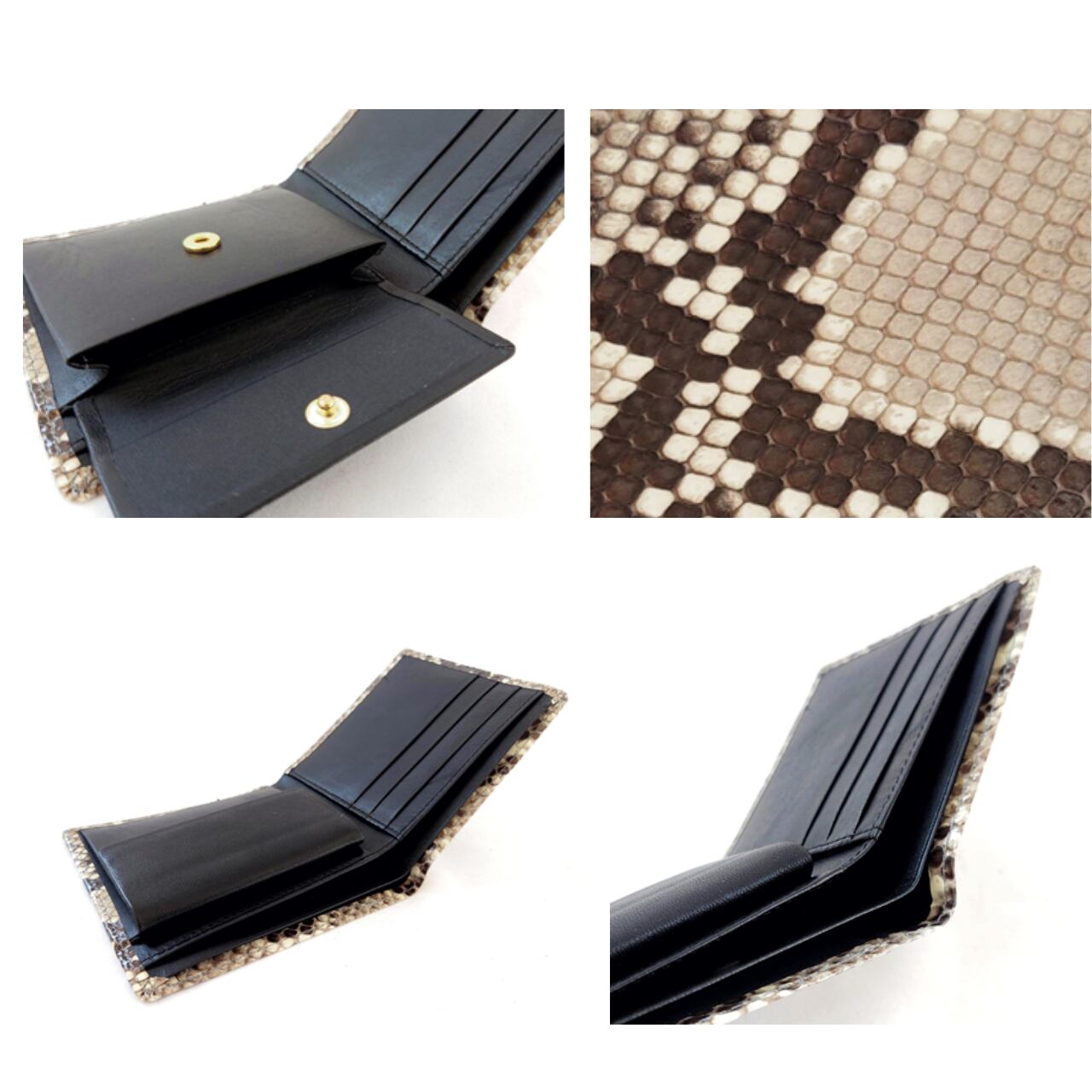 錦ヘビの革を使用した、二つ折り財布です。